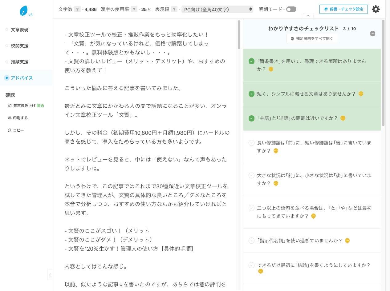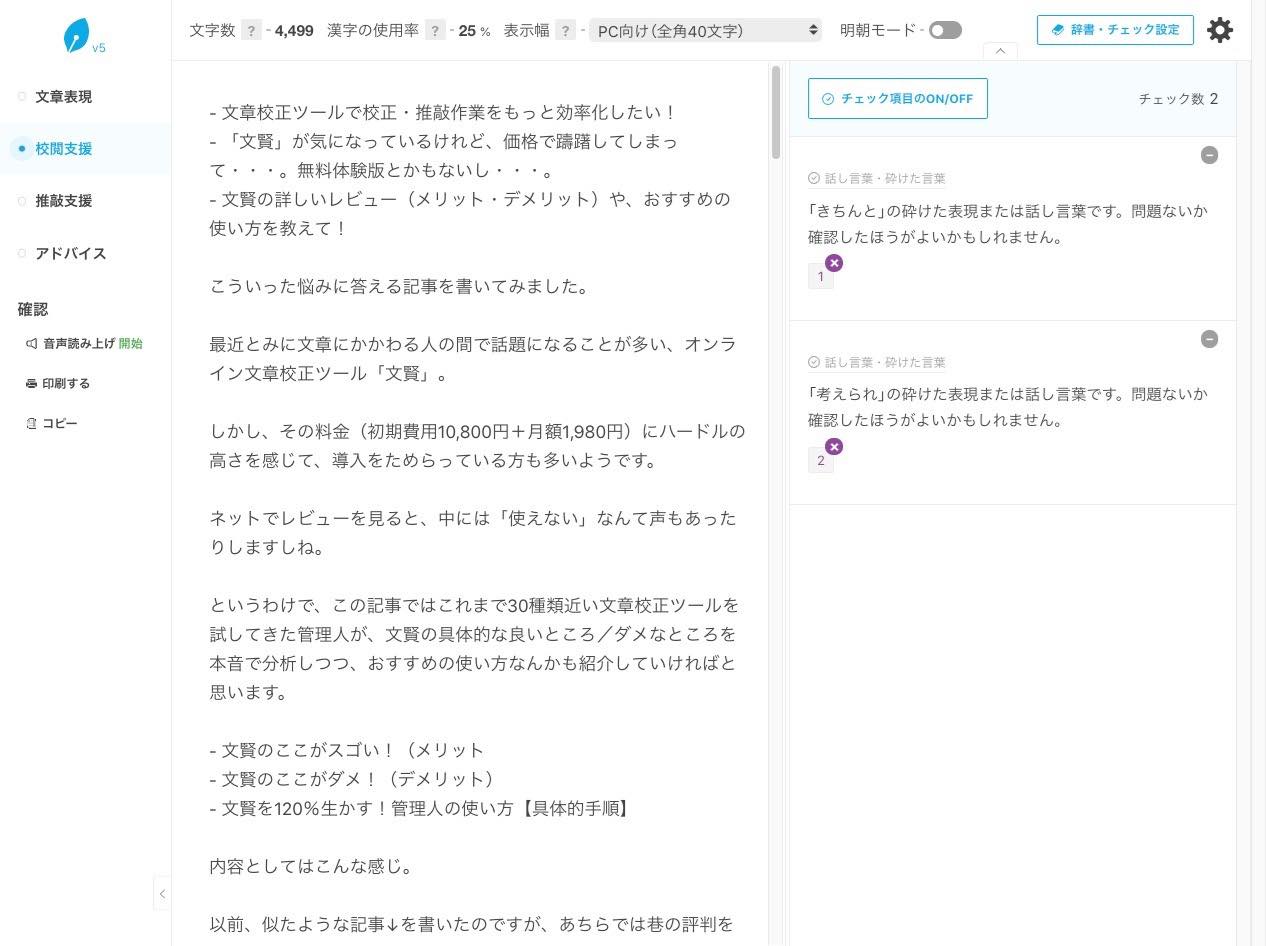 最近、文章にかかわる人の間で話題になることが多い、オンライン文章校正ツール「文賢」。