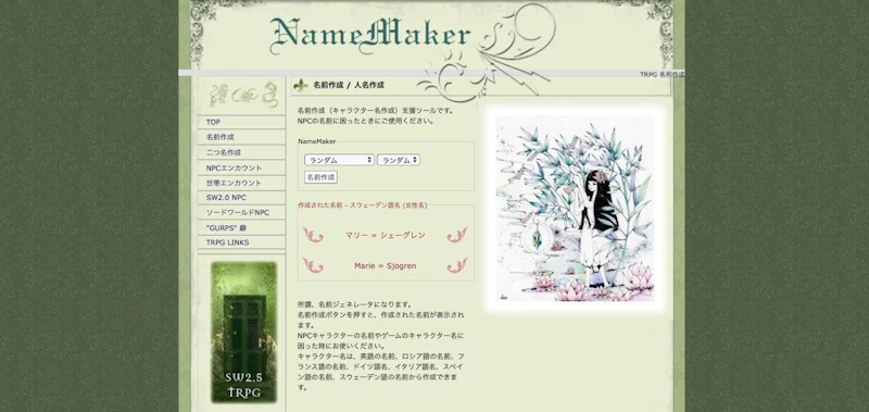 TRPG用のキャラクター名が作成できるツール。
