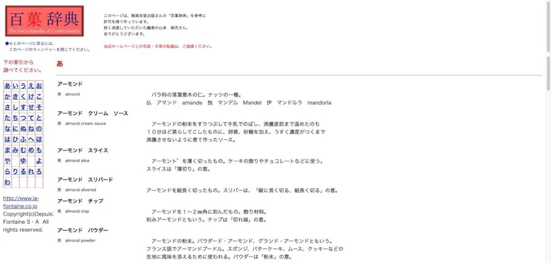 お菓子にまつわる様々な言葉を調べることができるサイト。