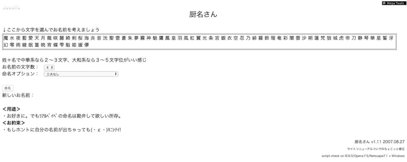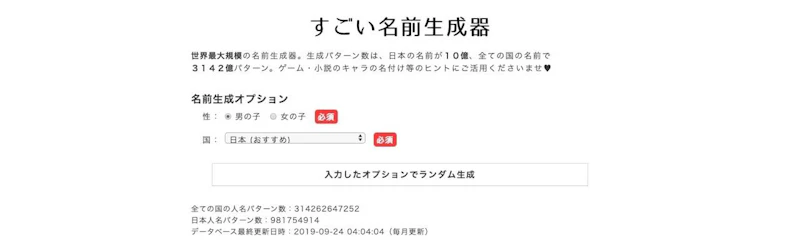 使う人を選びそうですが、あくまで参考程度の名前を作ってみるぶんには非常に有用なツールです。