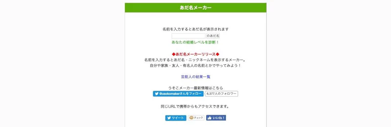名前を入力すると自動で「あだ名」を考えてくれるというツール。
