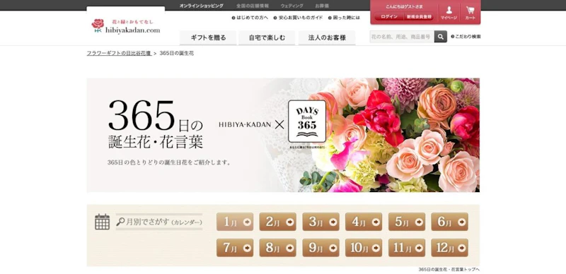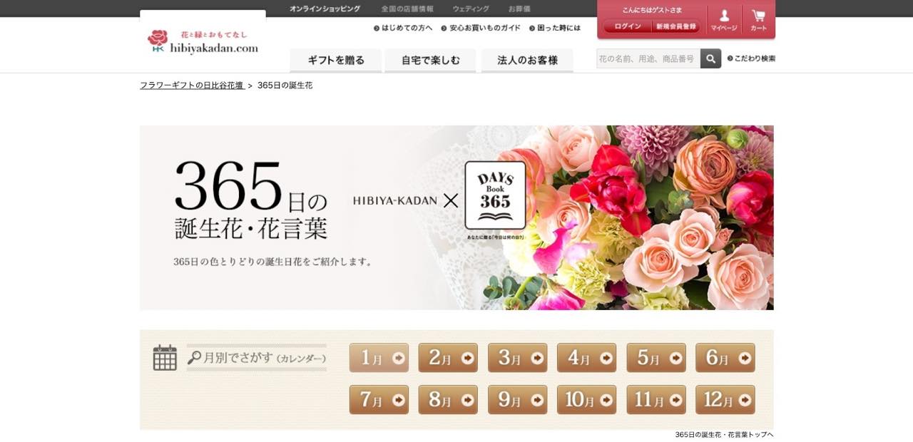 誕生花や花言葉を調べることができる日比谷花壇の情報コンテンツ。