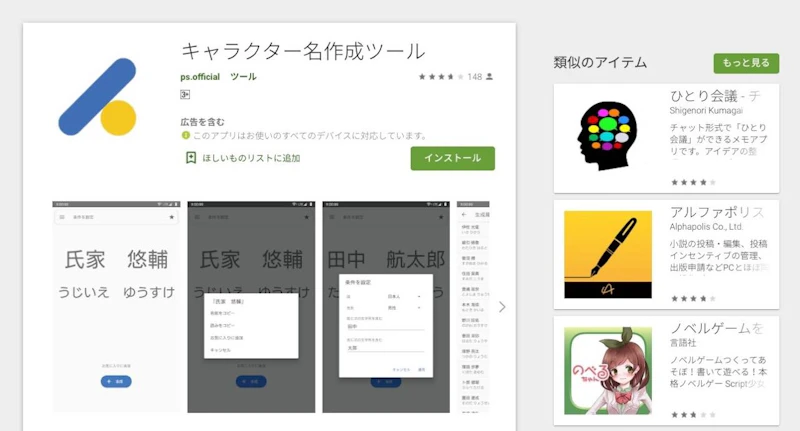 スマホで手軽に名前作成が行えるAndroidアプリ。