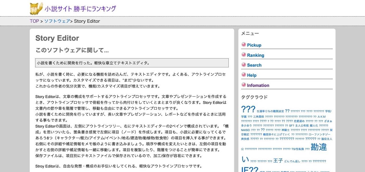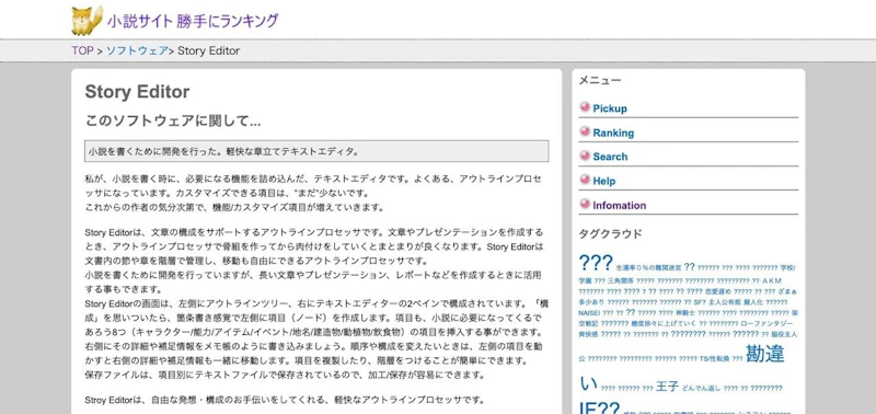 こちらは物書きの中でも、小説を書く人に特にぴったりなアウトラインプロセッサです。