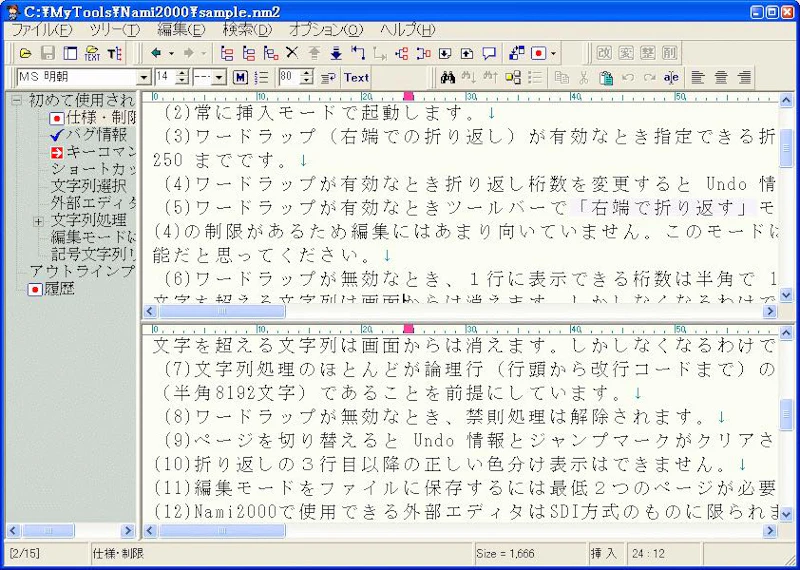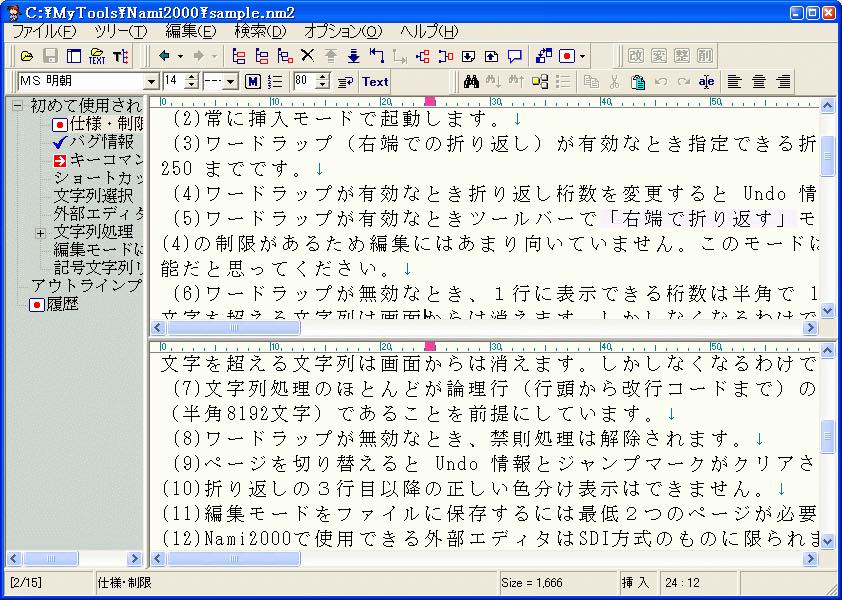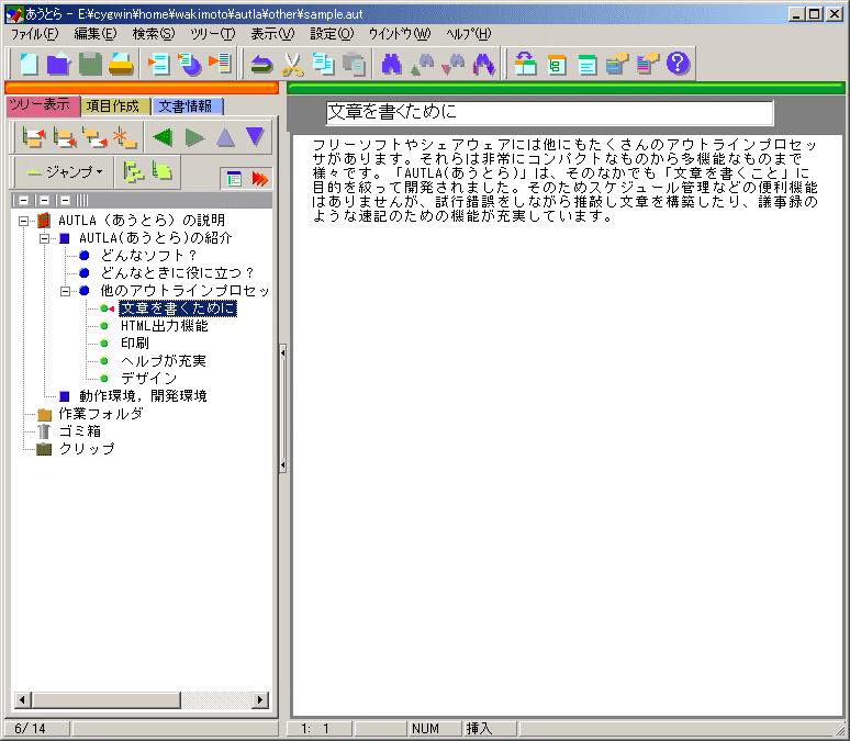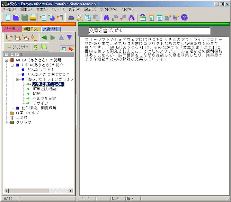 あくまで機能の一つとしてアウトラインツールが搭載されているので、アウトラインプロセッサ単体として見ると若干微妙なところがありますが、アウトライン機能はおまけ程度でいいならエディタとしての使い勝手は抜群。