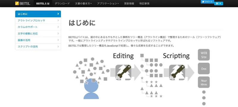 アウトライン(輪郭・骨子)をまとめながら文章を作成していくタイプのテキストエディター。