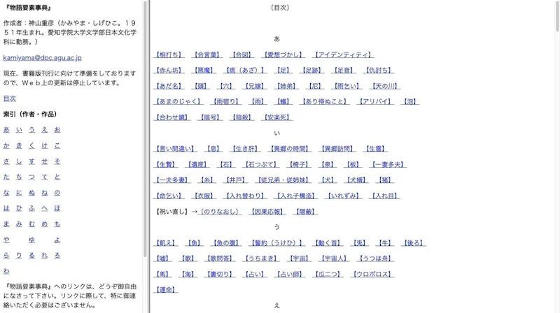 物語のテーマやモチーフ、ストーリーのパターンなどから作品を探せるサイト。