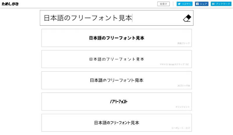 入力した文字からフリーフォントの見本一覧が出力できるWebアプリ。フォントはどれも商用利用可能です。