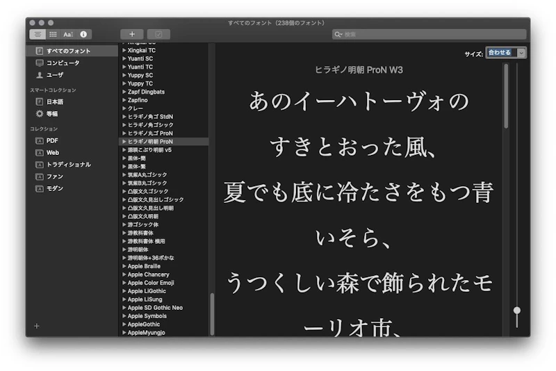 昔からDTP機として使用されてきたmacだけあって、標準フォントだけでも充分に美しい日本語フォントが用意されています。