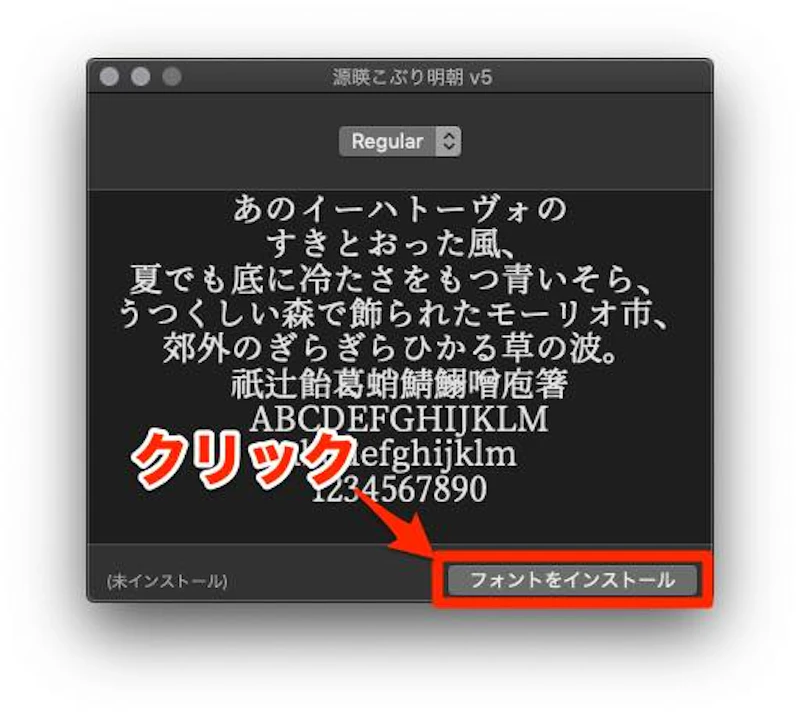 プレビュー画面右下のボタンをクリックして、フォントをインストールします。