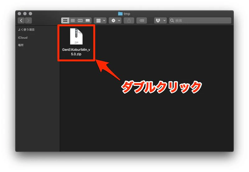 ダウンロードしたzipファイルを、ダブルクリックで解凍します。