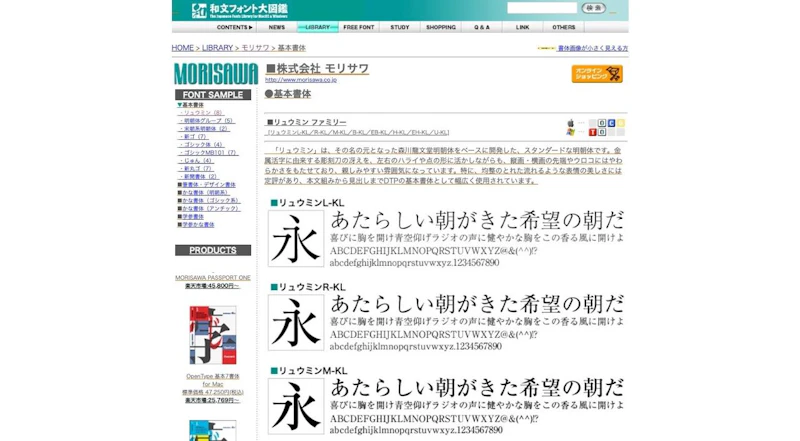 2,900書体以上の日本語フォントの見本を掲載したサイト。モリサワやフォントワークスなど、プロも使用する本格フォントが揃っています。