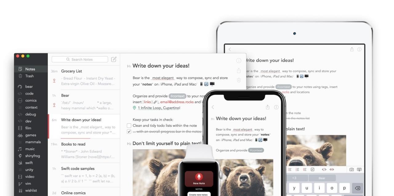 Evernoteと比較されることが多いノートアプリ。こちらはMarkdownに対応しているのが特徴。UIもシンプルなので純粋に文章を書き込んでいきたい方はこちらのほうがいいかも。情報やアイデアはEvernoteに集めて、まとまった文章はBearで書く、みたいなやり方もおすすめです。Bear(iPhone)