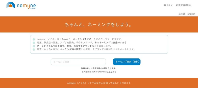 オンラインネーミング支援サービス nomyne(ノミネ)byGMO