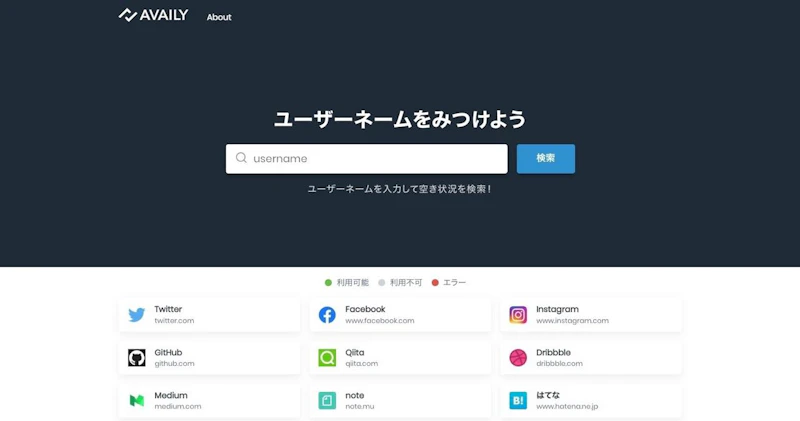 TwitterやFacebook、InstagramといったSNSアカウントの空きID(ユーザーネーム)を検索してくれるサイト。