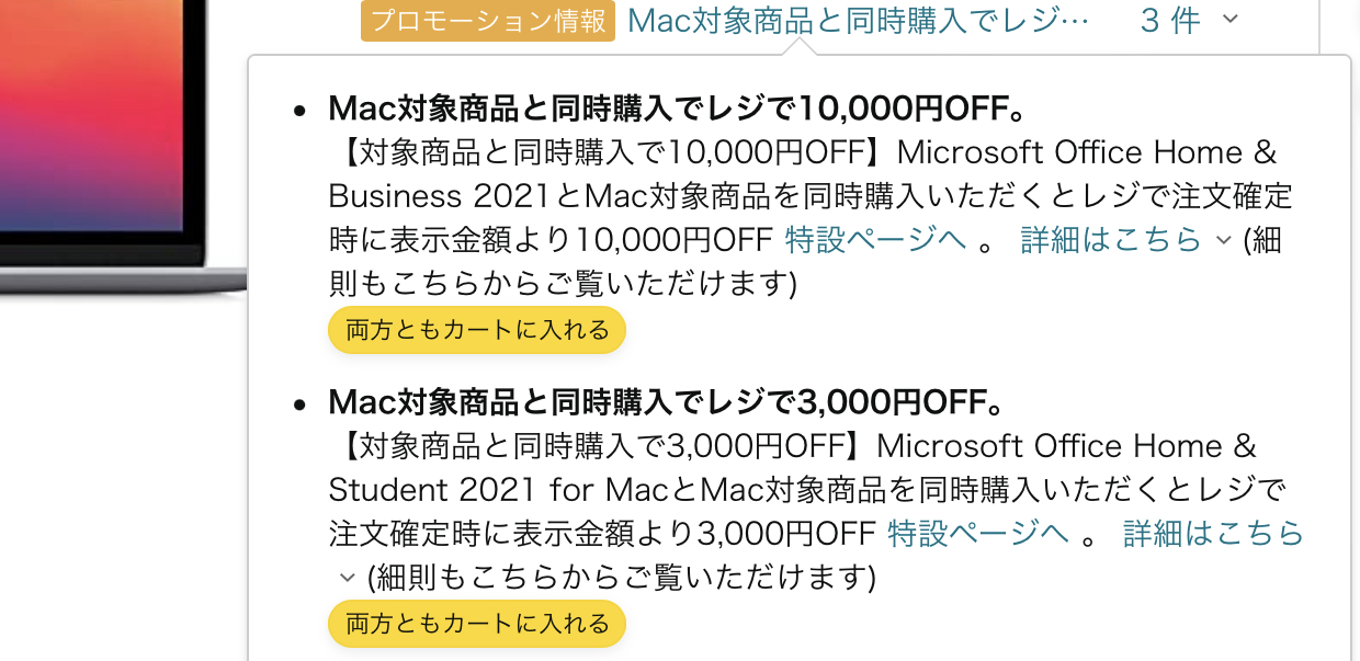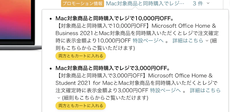 Amazonでは、定期的にMacbookとOfficeをセットで買うと割引になるキャンペーンが実施されています。
