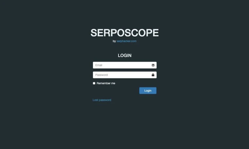 ログイン画面で先ほど設定したものを入力すれば、Serposcopeのホーム画面が表示されます。