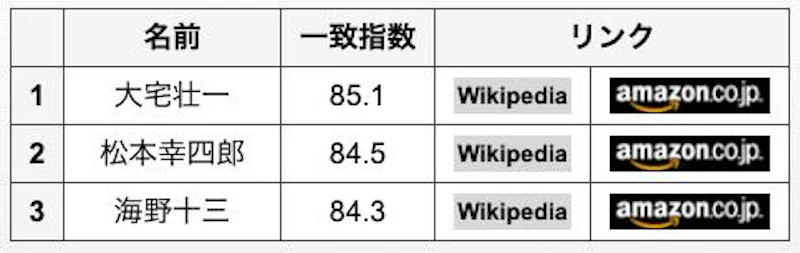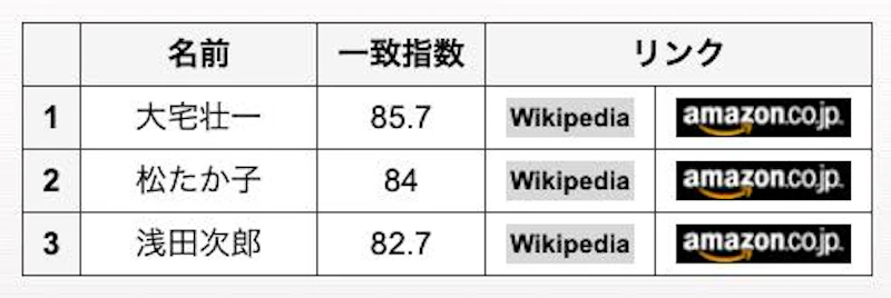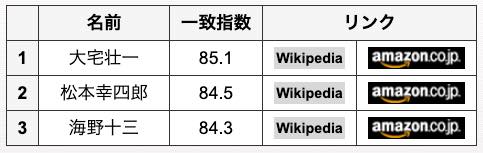 大宅壮一氏がトップなのは変わらず。注目は2位の松本幸四郎氏。おそらくはお父さんのほうだと思いますが、親子で文体が似るとか……マジですか。