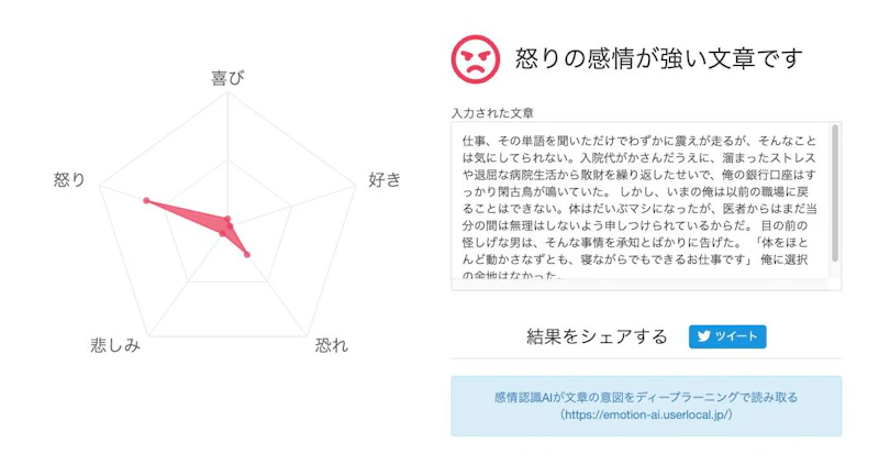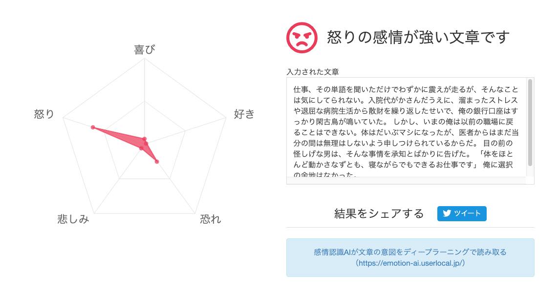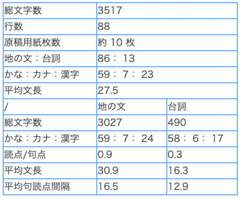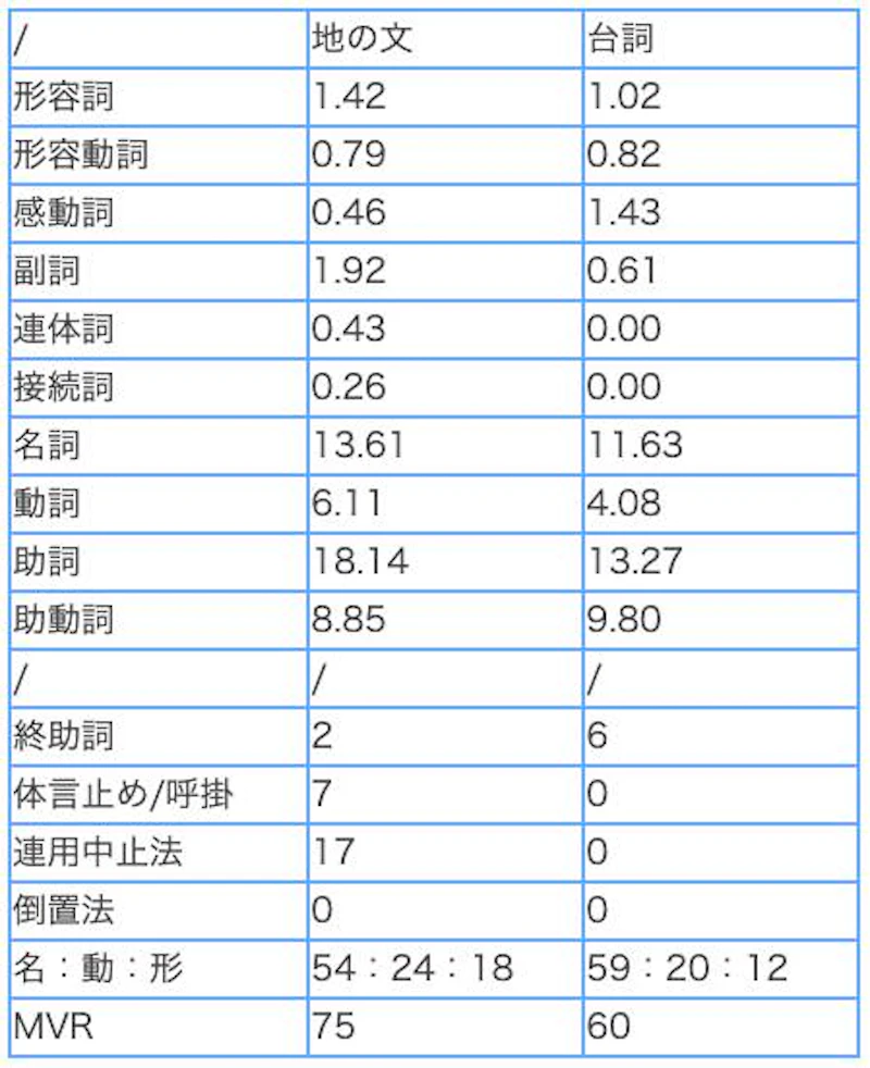 ちなみに、こちらの作品でも文章解析を行ってみたところ、驚きの結果が出ました。