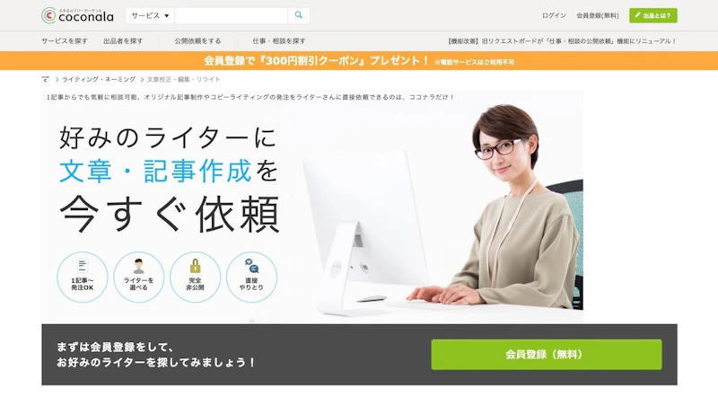 いきなり企業や個人に直接コンタクトを取るのが不安という方は、ココナラ