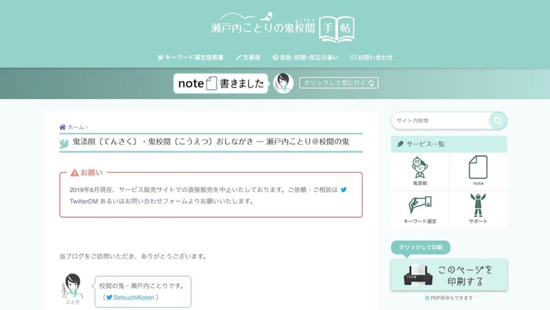 プロの校閲者である瀬戸内ことりさん(@SetouchiKotori)によるブログ記事の添削サービス。