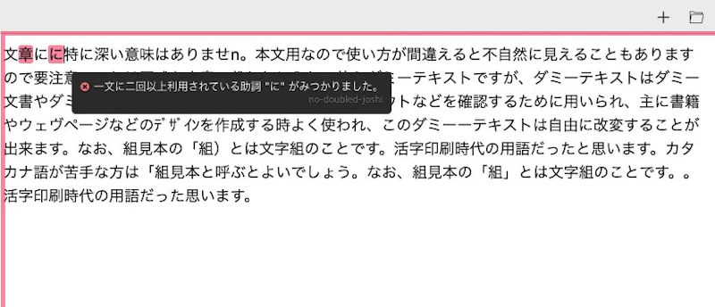 あとはページ内のフォームに入力した文章が自動でチェックされます。