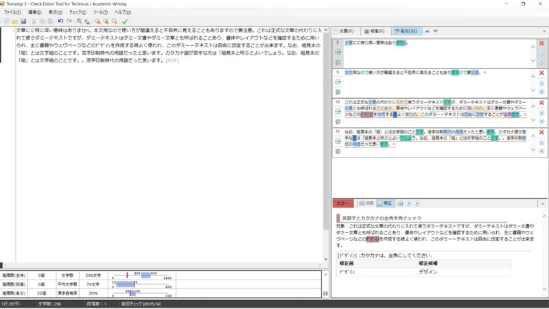 読みやすい文章を書くために注意すべきチェック項目が充実しているのが、Tomarigiの大きな特徴。これらは無料ツールではほとんど見られない、このソフトならではのメリットと言えます。