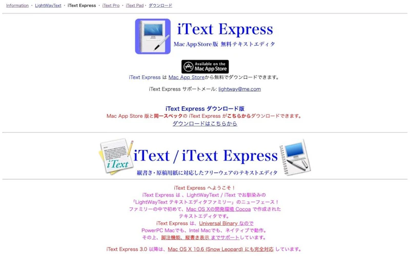 macのフリー縦書きエディタといえば、やっぱりこれ。※僕もHagoromoに移行するまでは、有料版の『iText Pad』を使っていました。標準の「テキストエディット」をベースにデザインされているので、はじめての方でも感覚的に操作が覚えられるのがメリットですね。ただ、最近更新が滞り気味なのがちょっと心配ですね。iText