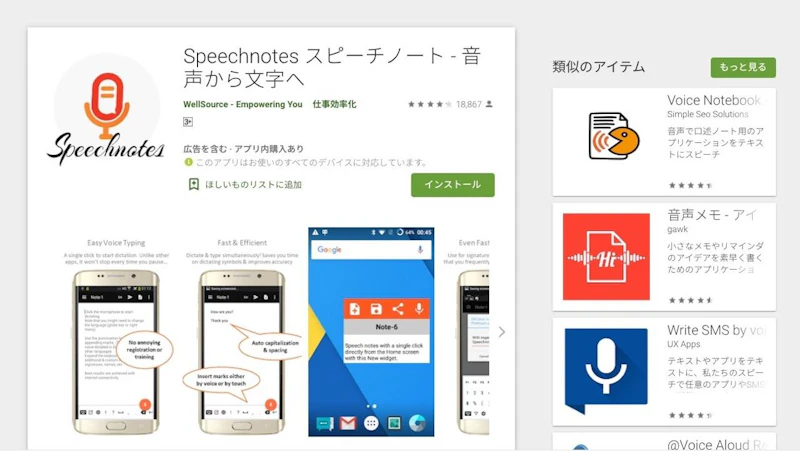 こちらもGoogleの音声認識エンジンを利用した音声入力メモアプリ。※Webアプリ版もあり。