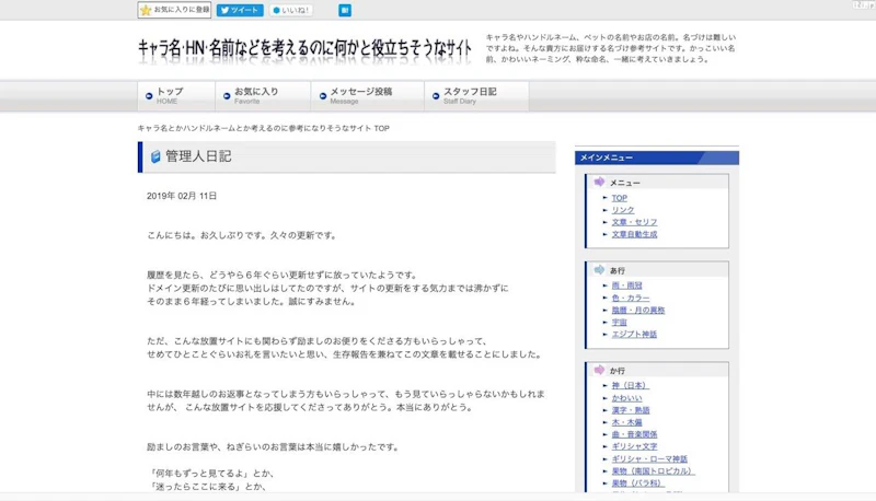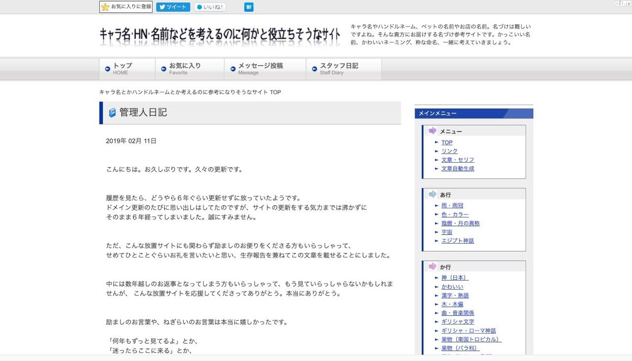 キャラ名とかハンドルネームとか考えるのに参考になりそうなサイト