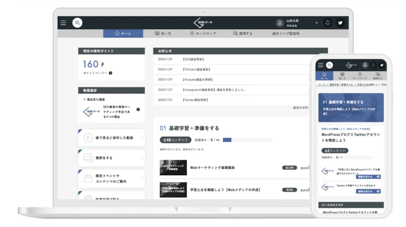 内容も初心者向けの基礎学習コンテンツから、上級者向けのリアルな戦略・コンサル講座まで幅広く揃っているため、自分のレベルに合わせて適切な教材が選べるようになっています。
