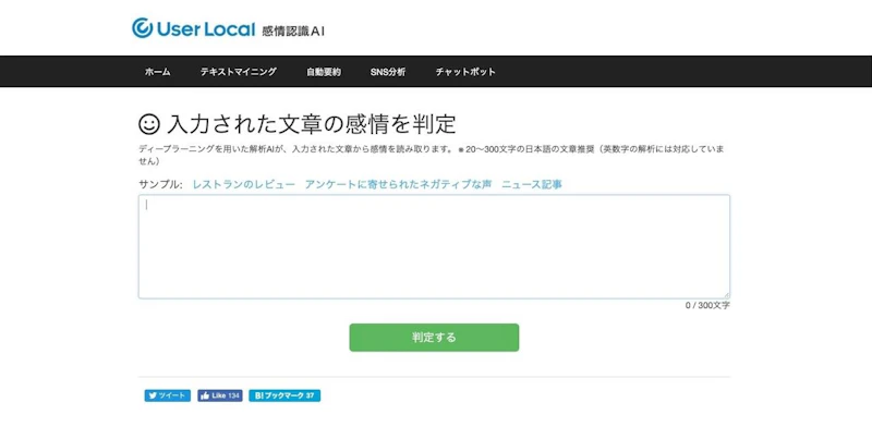 こちらはディープラーニングを活用して、文章の「感情」を診断してくれるというサイト。