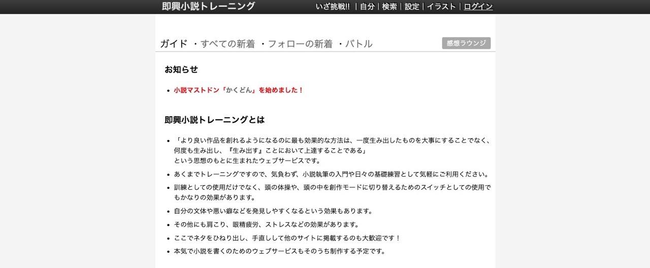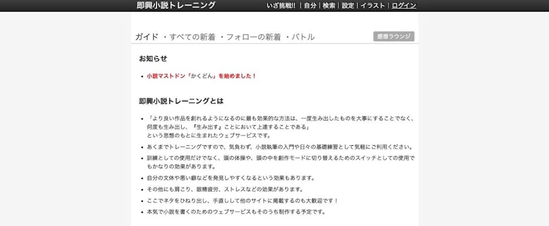 制限時間やお題のあり/なしを選べるのもポイント。毎週土曜日は参加者全員で即興小説バトルが繰り広げられます。