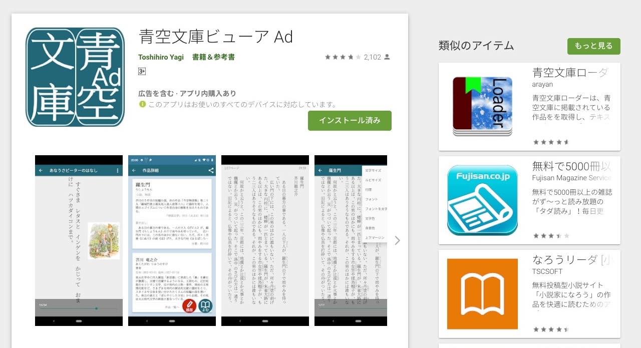 文豪たちの名文に学ぶ『青空文庫ビューア Ad』(Android)