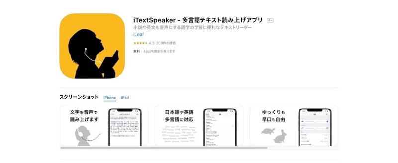 OS標準の読み上げ機能もいいですが、専用アプリのほうが余計な設定無しで手軽に利用できます。