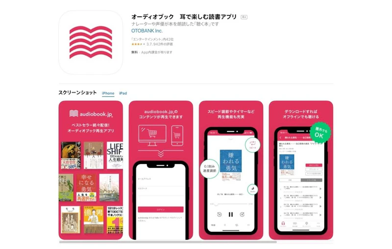 耳から文章を聴く『Audiobook.jp』(iPhone/Android)