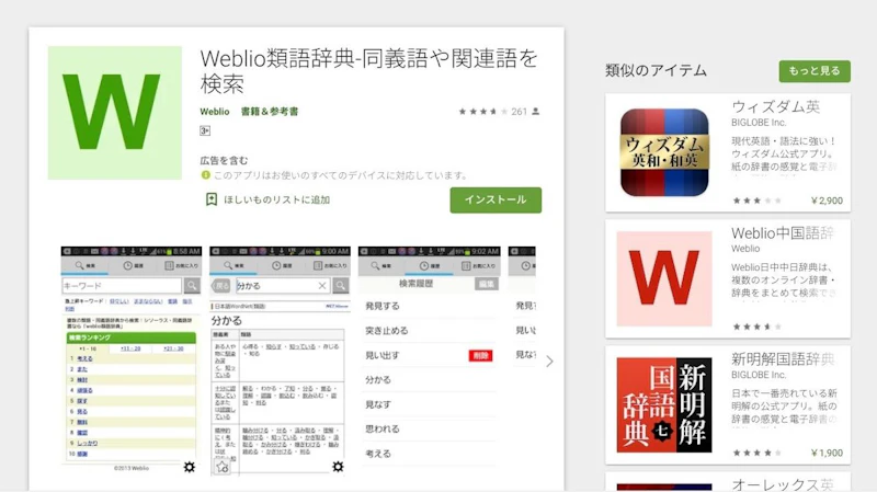 ネット辞書として重宝している人も多いWeblioの無料類語辞典アプリ。